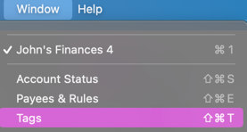 - In Quicken, choose Window menu → Tags and create a new tag as described in the above option.