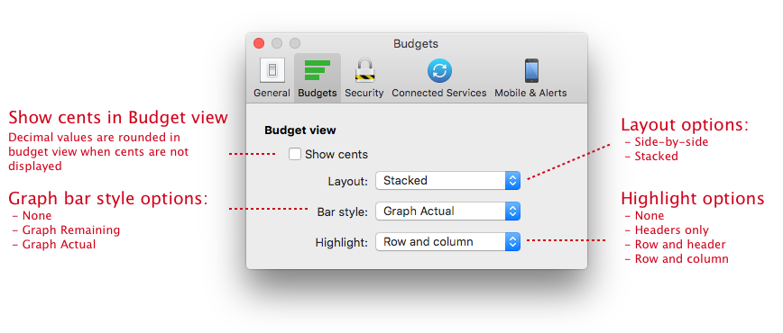 Budget view graphs and settings