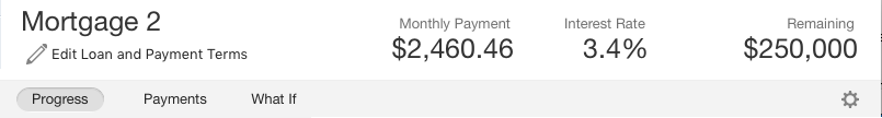 As soon as you add loan details, both the Progress and Payments views will update, and the other fields will populate (such as the monthly payment and interest rate).
