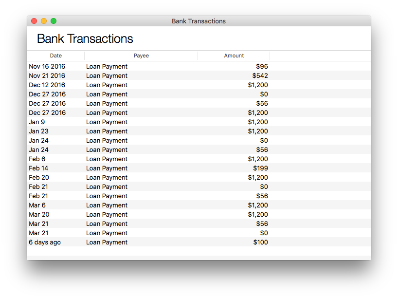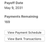 If you set up the loan as a connected account, you will have the View Bank Transactions button to show the basic payment information based on data from your financial institution.