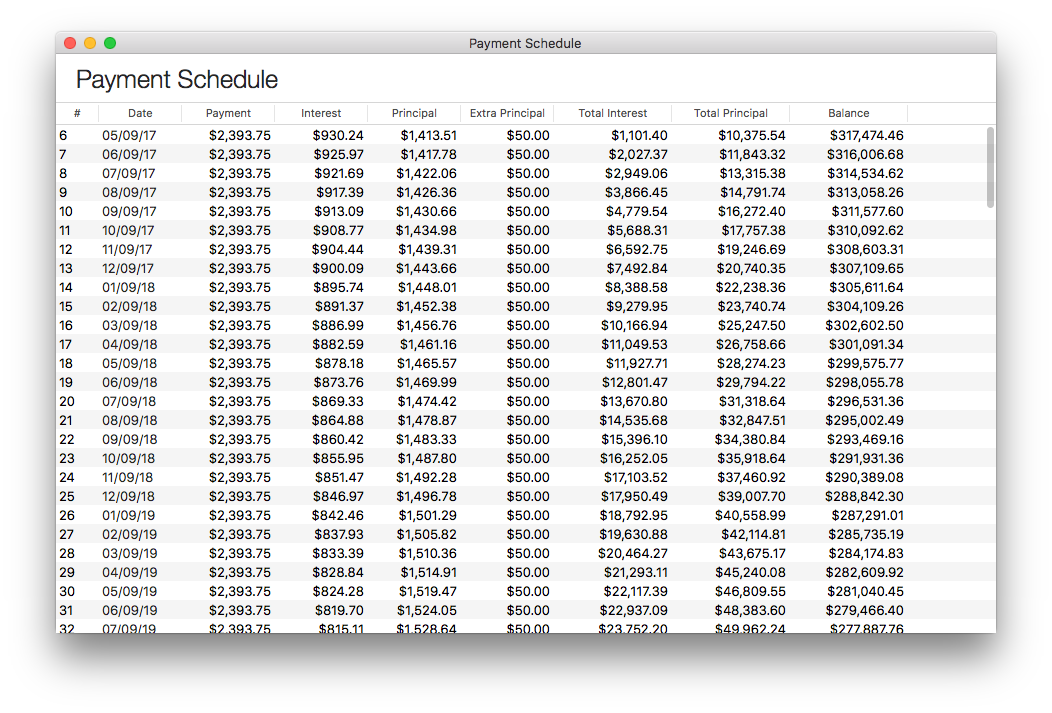 The View Payment Schedule button displays a separate window with details about your remaining payments. It is estimated based on the information you provided when you set up your loan, and your current balance.