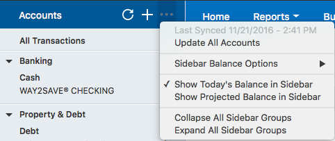 All of these can be updated by refreshing all of your account details. You can either click on the Update All button, or you can use the three-dots dropdown menu at the top of the sidebar to refresh the data.