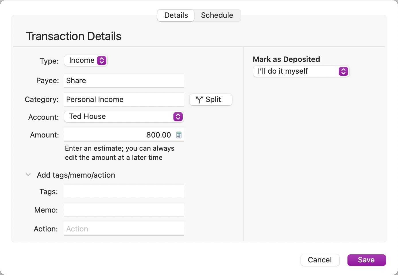 | Mark as Paid | Mark this scheduled transaction as paid |