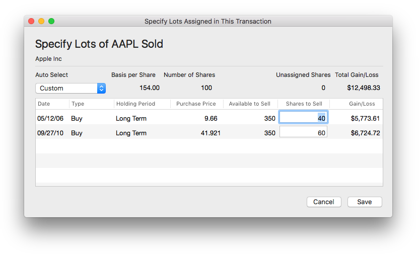 More advanced investors may want to specify which lots are assigned to the sale for tax optimization.