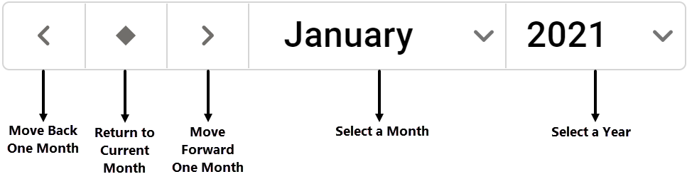 When you select Calendar View, you'll see your current month's calendar. To see a different month, use the controls at the top of the page.