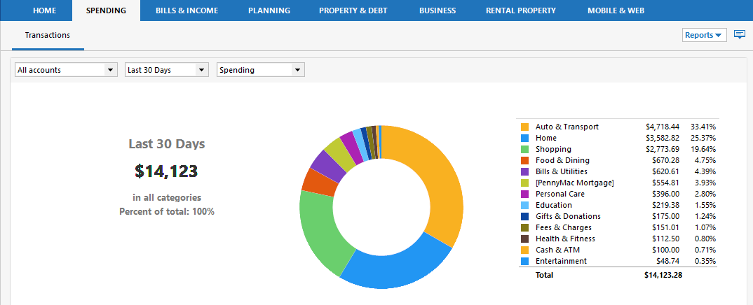 Use the Spending tab to manage transactions and balances by linking your financial institutions to Quicken. Make online payments and track bills electronically. This section focuses on the tools available to monitor your personal income and expenses. If you are using Quicken Business & Personal, you will have access to additional tools to track business income and expenses.