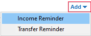 Depending on your tab, you'll have different options for adding an Income Reminder.