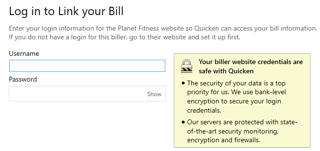 Get reminders for online bills. Enter the login information for the biller's site. Quicken automatically contacts the site and determines amount due and due date based on the information on the site.