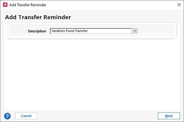 Enter a short Description of the transfer such as Vacation Fund Transfer.