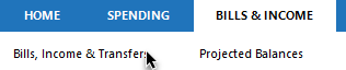 Access Reminders: Open the Bills & Income tab. If your tabs are combined, you'll find this under Bills Income & Transfers.