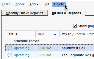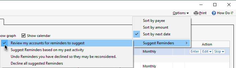 - Go to Tools > Manage Bill and Income Reminders.