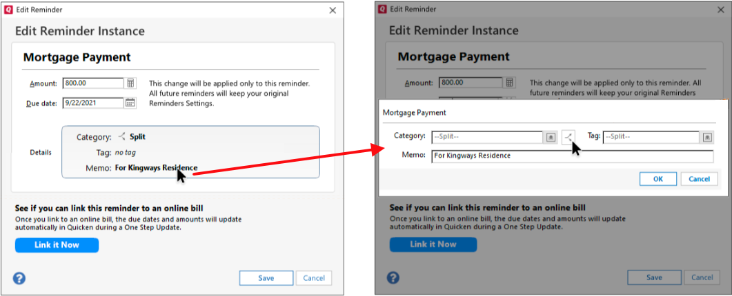 Modifying Bill or Income Reminders